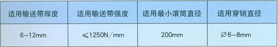 適用輸送帶寬度規格有:650mm、800ram、1000mm、1200mnl四種規格。